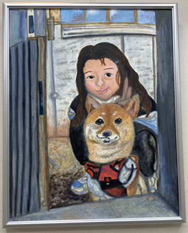 「妹1人と妹1匹」 中2 油彩 サイズ:F30号