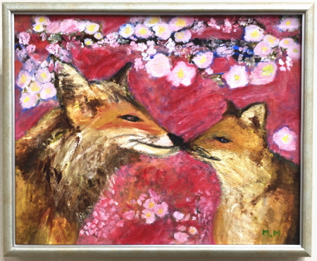 「狐の親子と桜」 中1 油彩 サイズ:F15号