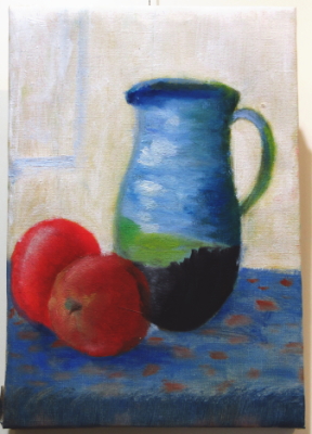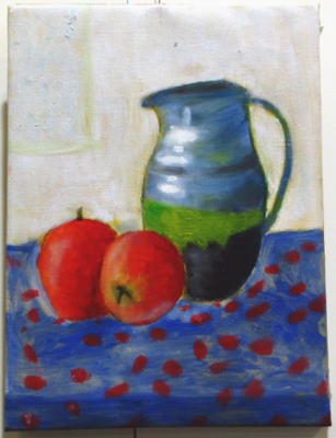 「油絵習作ポットとリンゴ」 小6 油彩 サイズ:A4号