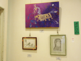 展示室奥では、大人の皆さんの作品と講師の作品を展示しました。